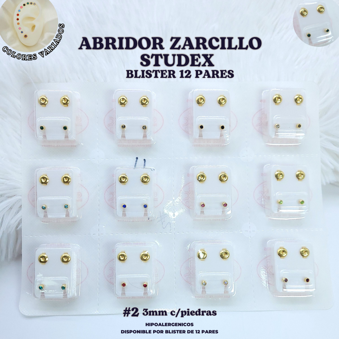 ABRIDOR ZARCILLOS STUDEX BLISTER DE 12 PARES- #2 cantidad