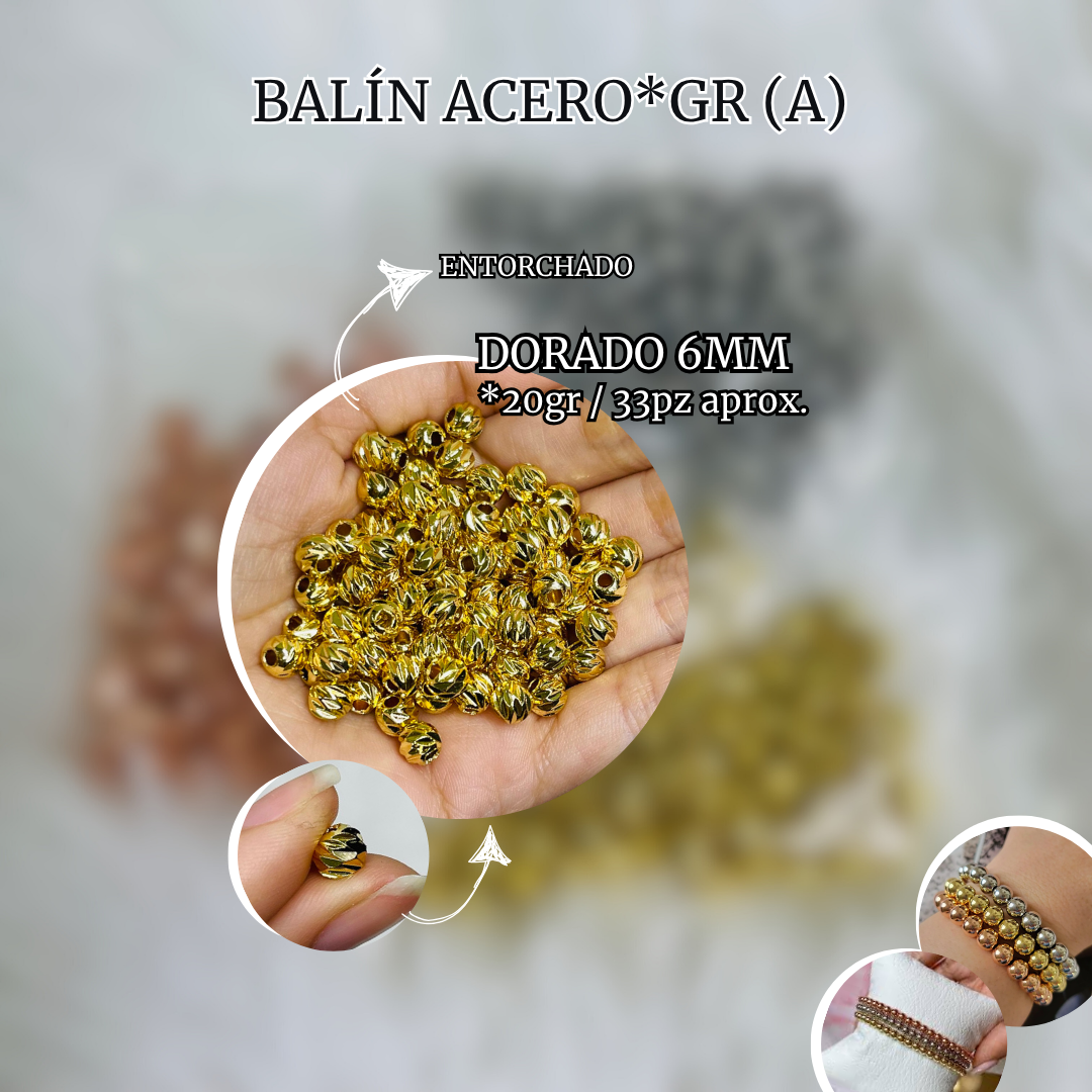 BALÍN ACERO*20GR (A) - DORADO 6MM ENTORCHADO