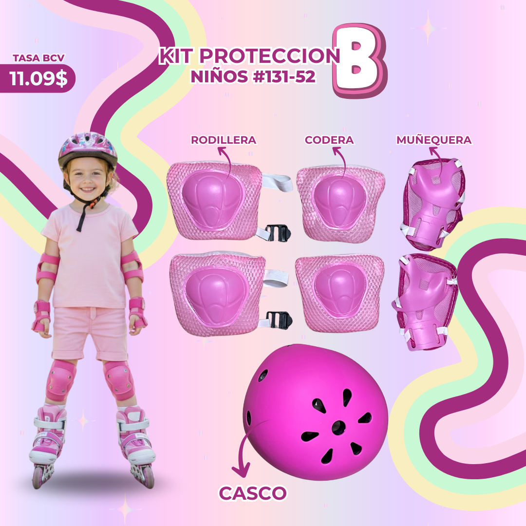 KIT DE PROTECCION (B) NIÑO CON CASCO #131-52 ROSA cantidad