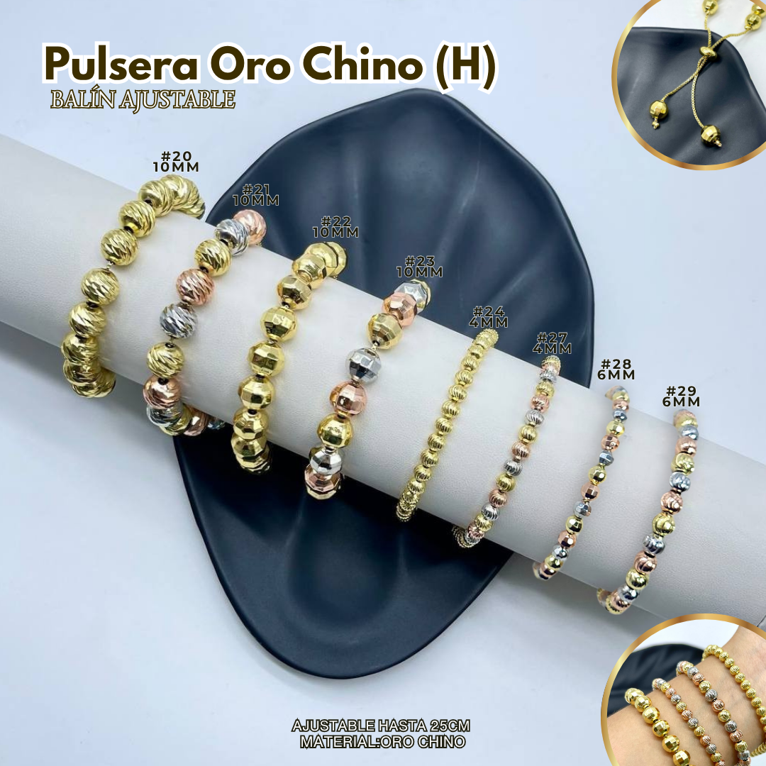 PULSERA ORO CHINO (H) BALÍN AJUSTABLE- #24 cantidad